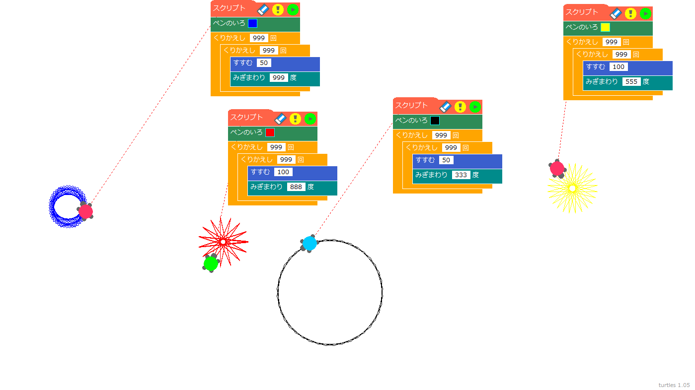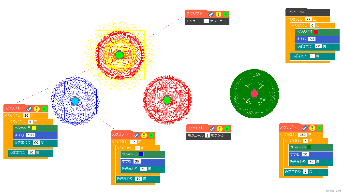 タートルグラフィックス専用「turtles(タートルズ)」はこちらからダウンロードしてご利用ください。