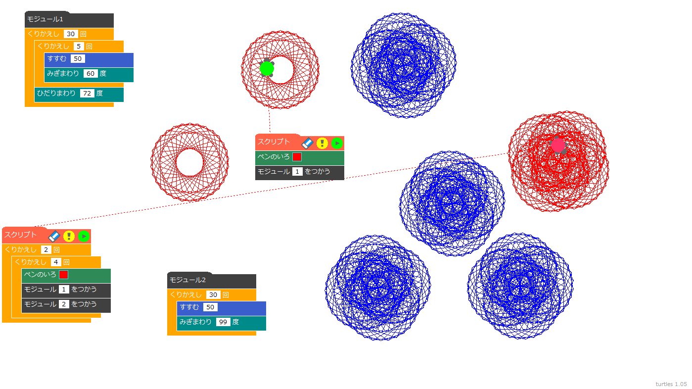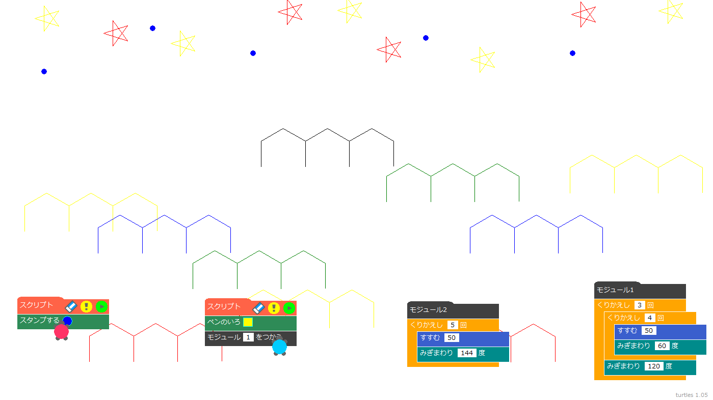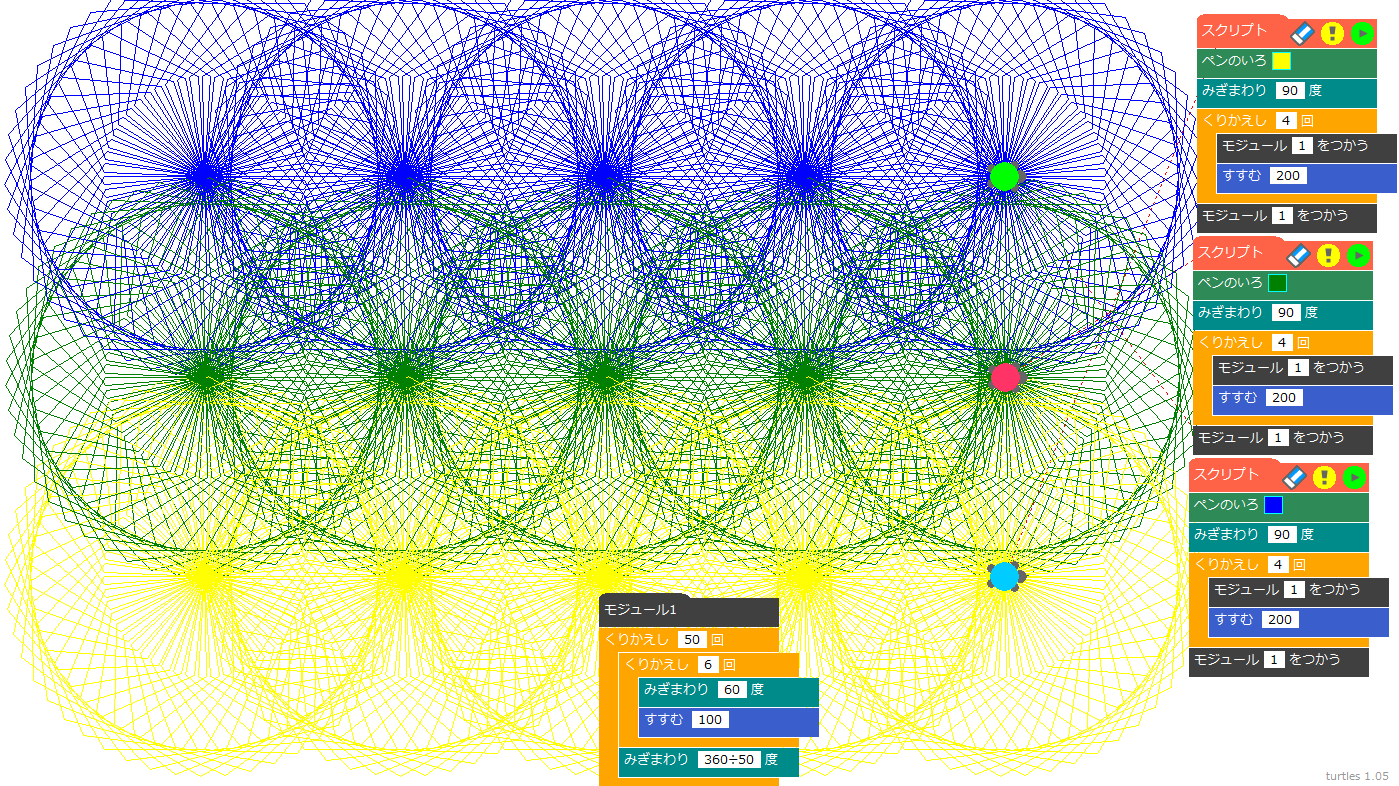タートルグラフィックス専用「turtles(タートルズ)」はこちらからダウンロードしてご利用ください。