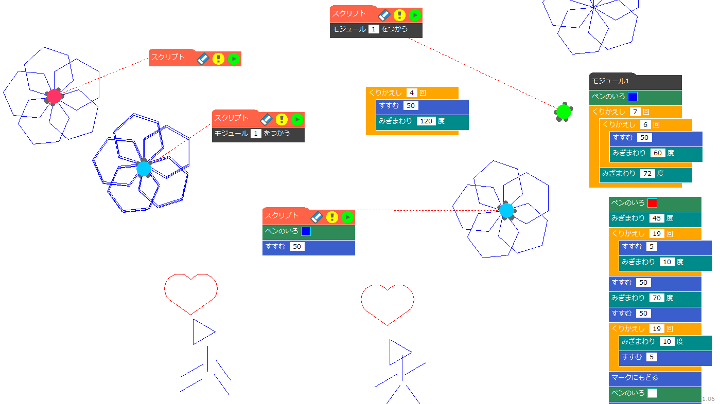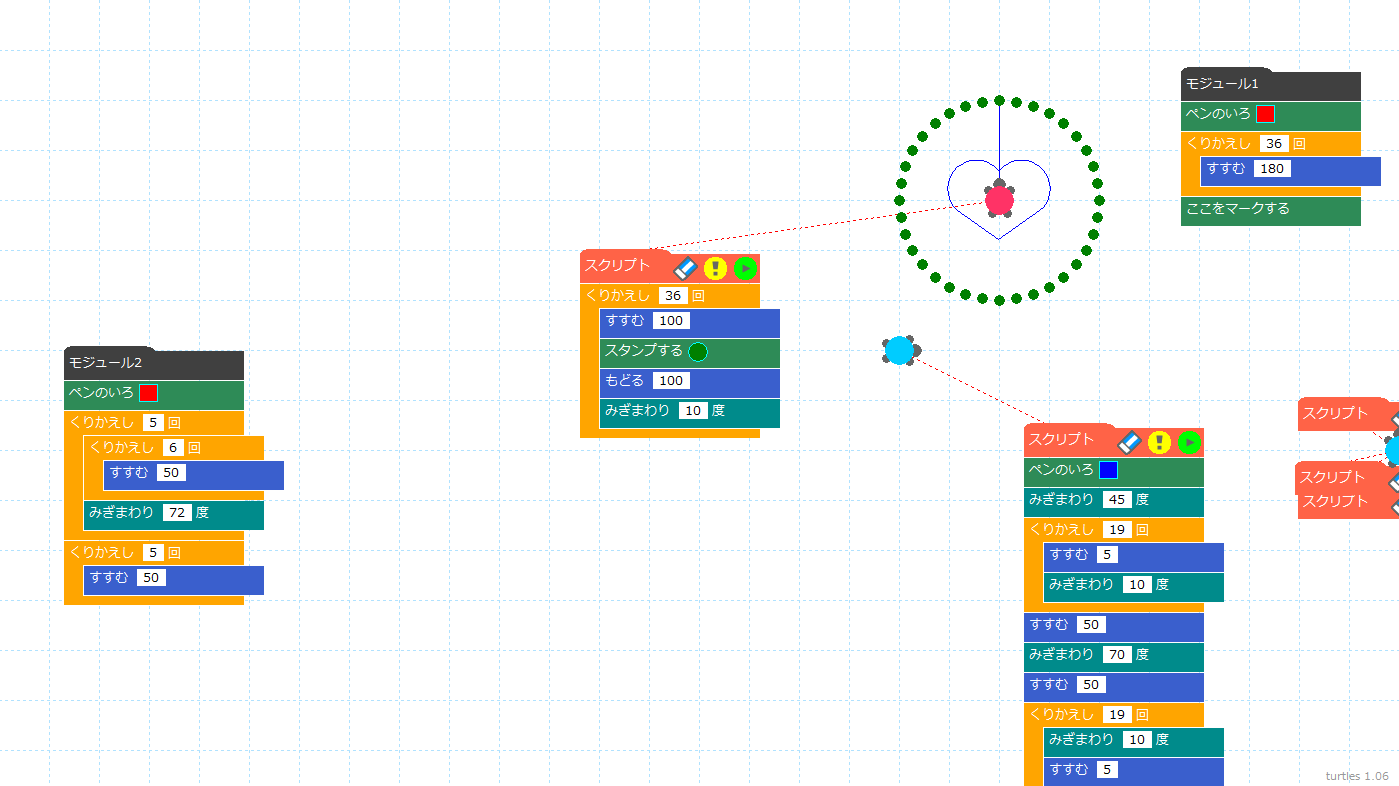 タートルグラフィックス専用「turtles(タートルズ)」はこちらからダウンロードしてご利用ください。