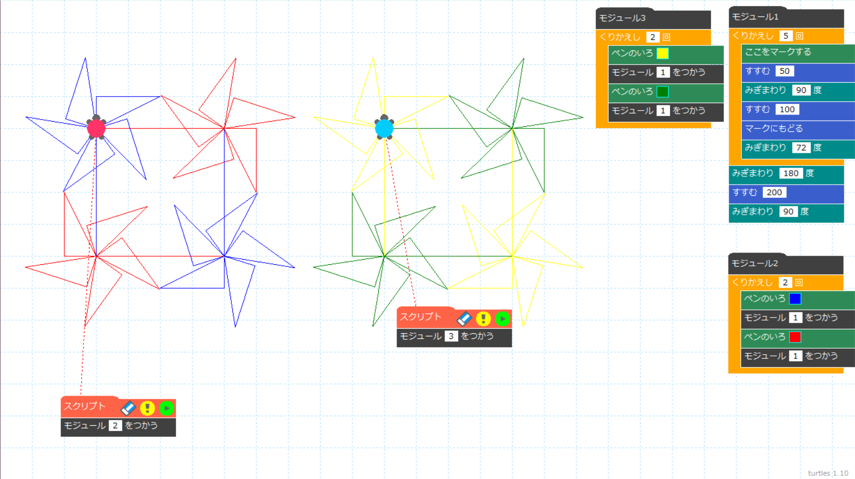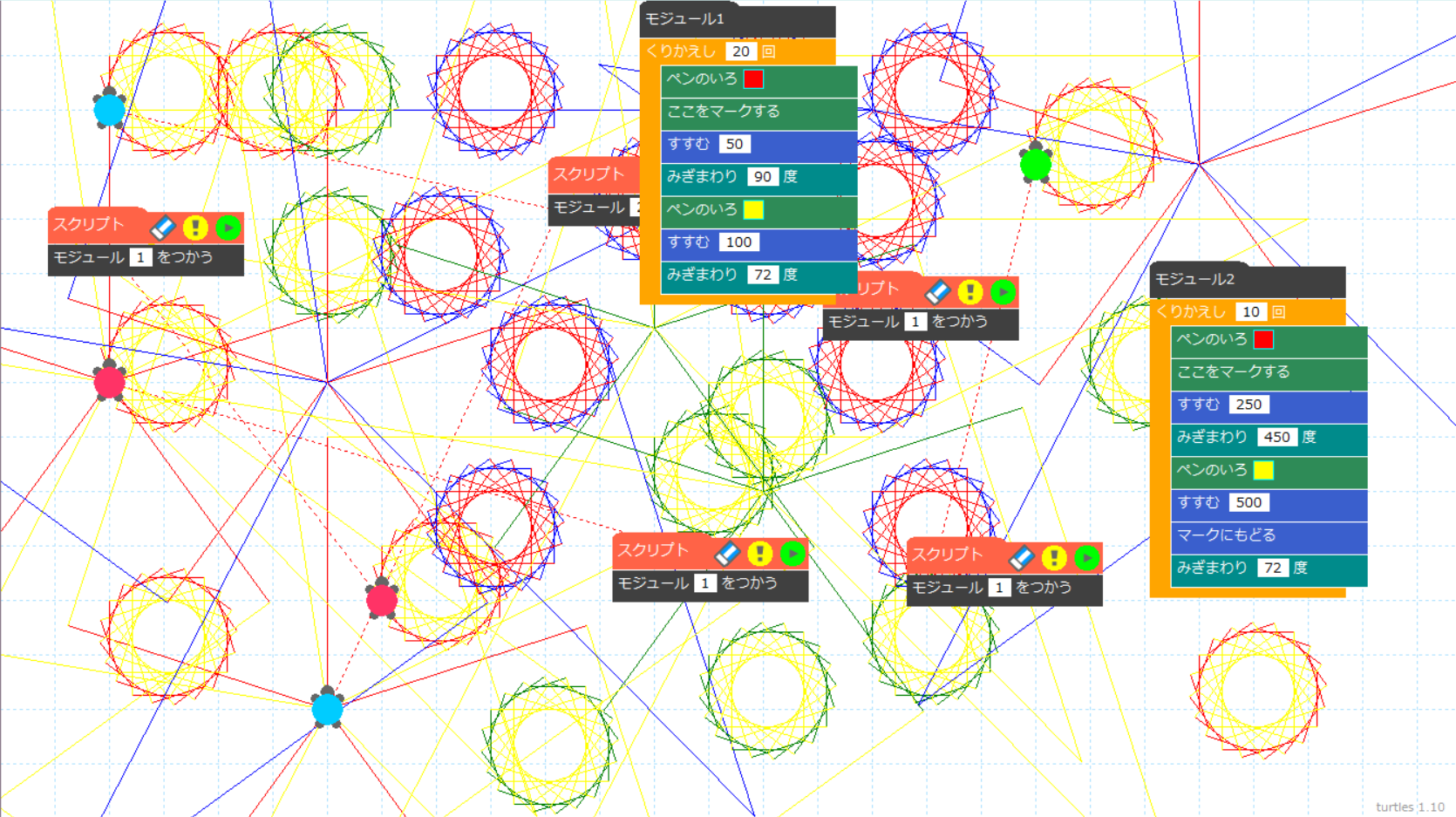 タートルグラフィックス専用「turtles(タートルズ)」はこちらからダウンロードしてご利用ください。