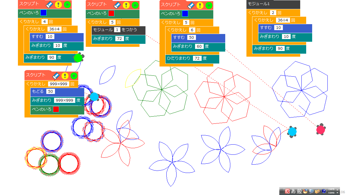 タートルズやスクラッチで自分なりのオリジナル作品づくりにチャレンジしました。