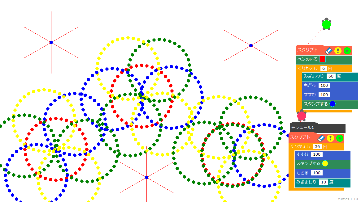 タートルズやスクラッチで自分なりのオリジナル作品づくりにチャレンジしました。